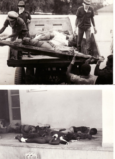 Quando, passados uns cinco minutos volto a passar pelo local já a multidão tinha dispersado e recebi a notícia que o Ex-Capitão Ramiro Pinheiro e o Ex-Alferes Santos tinham sido feridos mortalmente e que o Capitão Figueiredo dos Comandos, que também se encontrava no local, tinha ido em estado grave para o Hospital Militar. Havia, dos graduados presentes, escapado o furriel que se abrigou atrás do pneu do Unimog.