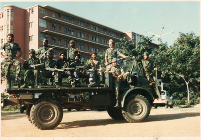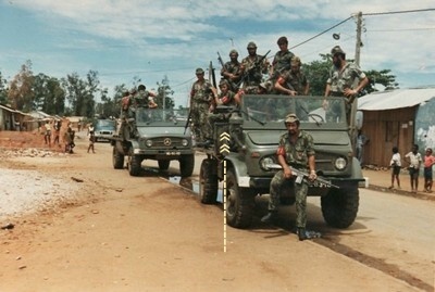 A minha sorte é que estávamos num Unimog 404 a gasolina (de arranque rápido) e perante dois indivíduos com a farda de caqui do MPLA a cruzarem as armas à frente da viatura, com o intuito de nos barrarem a saída, eu só tive tempo de dizer ao soldado condutor Cascabulho:
