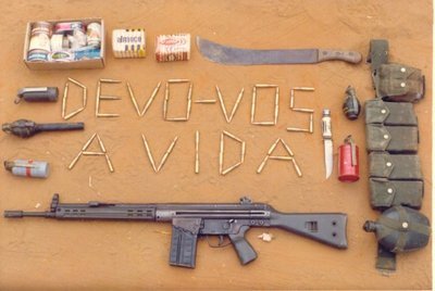 De resto praticamente não temos nada, até mesmo as fotos, como eu era o único que tirava fotografias, dos outros grupos só temos dentro do quartel, fotos tiradas na rua não temos nada, e é evidente que não foi só o meu grupo que sofreu e andou metido no inferno.