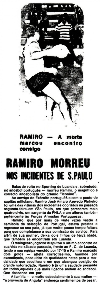E daí o ter-se deixado envolver no meio de uma confusão junto ao Mercado de S. Paulo e que, devido à presença de elementos armados do MPLA mal preparados, mal formados, amedrontados e em pânico, dispararam indiscriminadamente sobre os nossos militares, tendo o Ex-Capitão Ramiro e o Ex-Alferes Santos sido mortos quando tentavam uma conciliação.