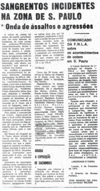 Foi no dia 4 de Fevereiro de 1975, no mercado de São Paulo, na avenida do Brasil,Luanda - Angola,