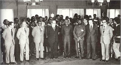 Em cima, os 3 lideres angolanos, que tinham tanta inteção de respeitar o mesmo acordo, como eu tenho de ir amanhã para a lua!!
